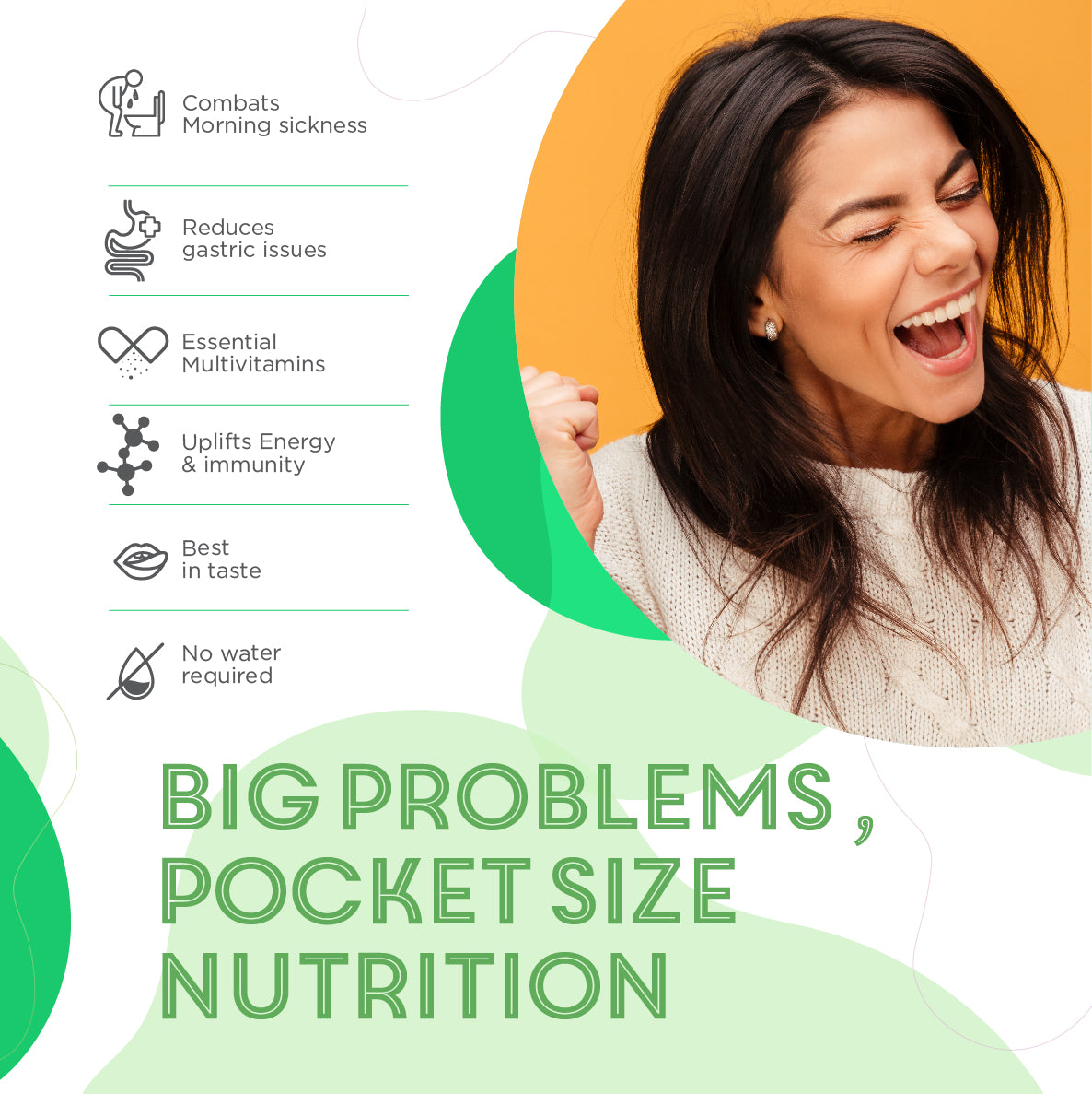 •Combats Morning Sickness •Reduces Gastric Issues •Essential Multivitamins •Uplifts Energy & Immunity •Best In Taste •No Water RequiredCONVENIENCE