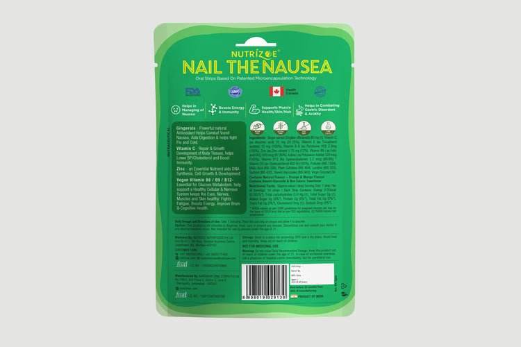 Nail the Nausea are fortified with key essential multivitamins like Vitamin B1,B2 ,B9,B12.Vitamin C ,Vitamin E & Zinc.