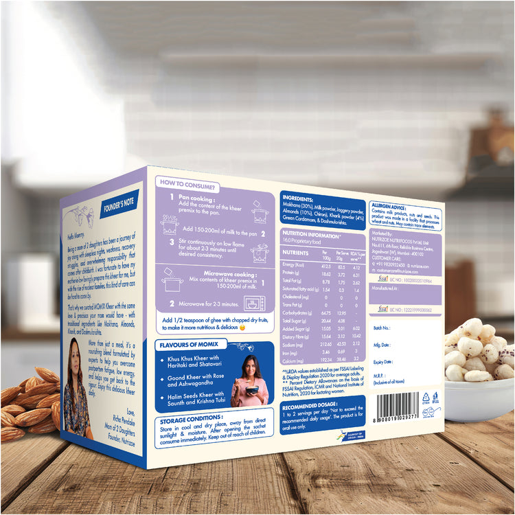 Momix Kheer is formulated to boost lactation, support digestion, improve energy levels, and promote overall well-being. Its nutrient-rich ingredients are carefully chosen to address the unique needs of postpartum mothers.