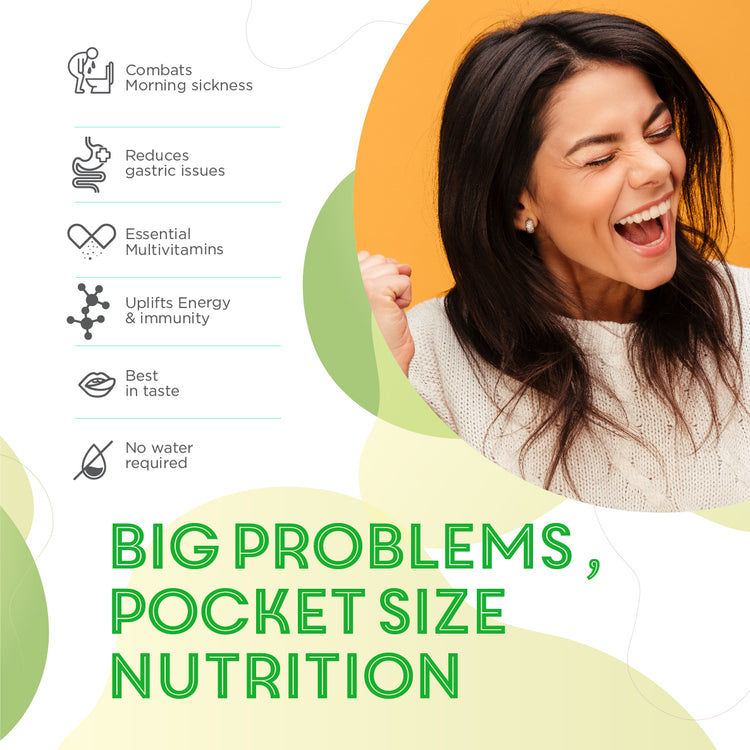 •Combats Morning Sickness •Reduces Gastric Issues •Essential Multivitamins •Uplifts Energy & Immunity •Best In Taste •No Water RequiredCONVENIENCE