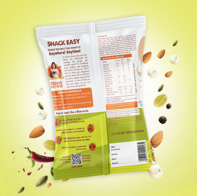 SnackEasy is a millet-based, healthy snack designed specifically for pregnant moms. It satisfies pregnancy cravings while being highly nutritious and versatile, making it the perfect guilt-free snack.